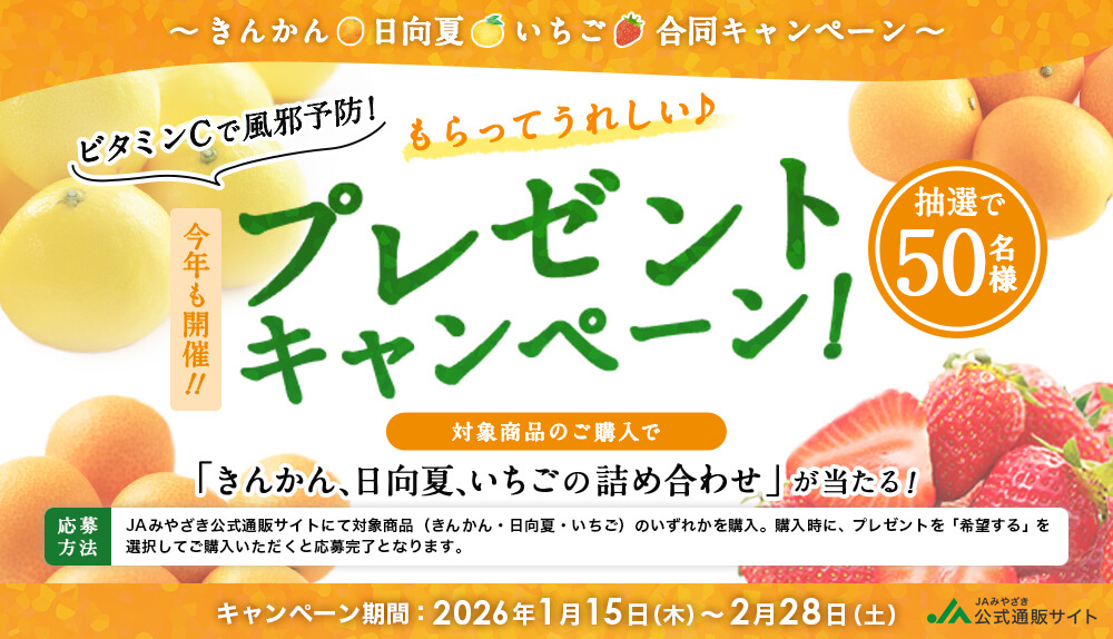 今年も開催!「~きんかん・日向夏・いちご合同キャンペーン~ ビタミンCで風邪予防!もらってうれしいプレゼントキャンペーン!」が始まりました!
